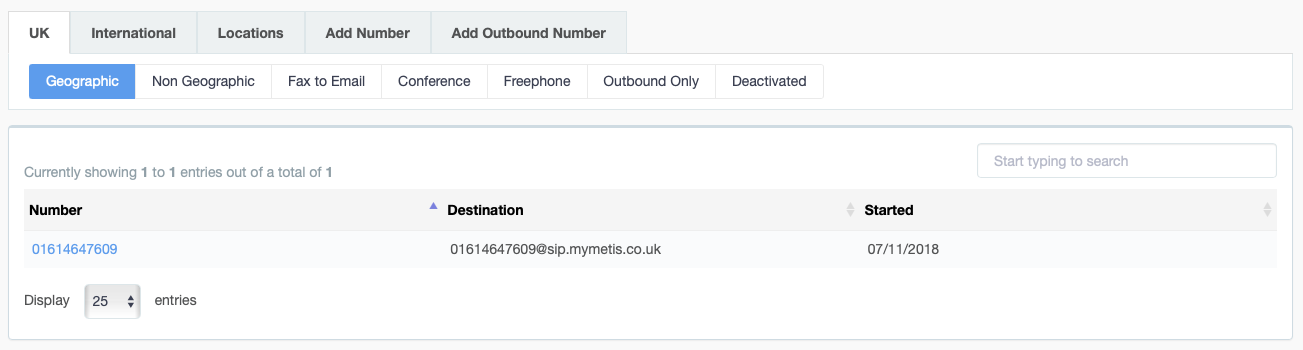 Outbound only | View 'validated' UK CallerID's that can be used when making outbound calls |