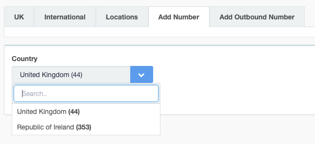 On the first screen, you can select from UK or Ireland numbers. In this example, we will pick a UK number for the Manchester location and set it as a standard geographic number.